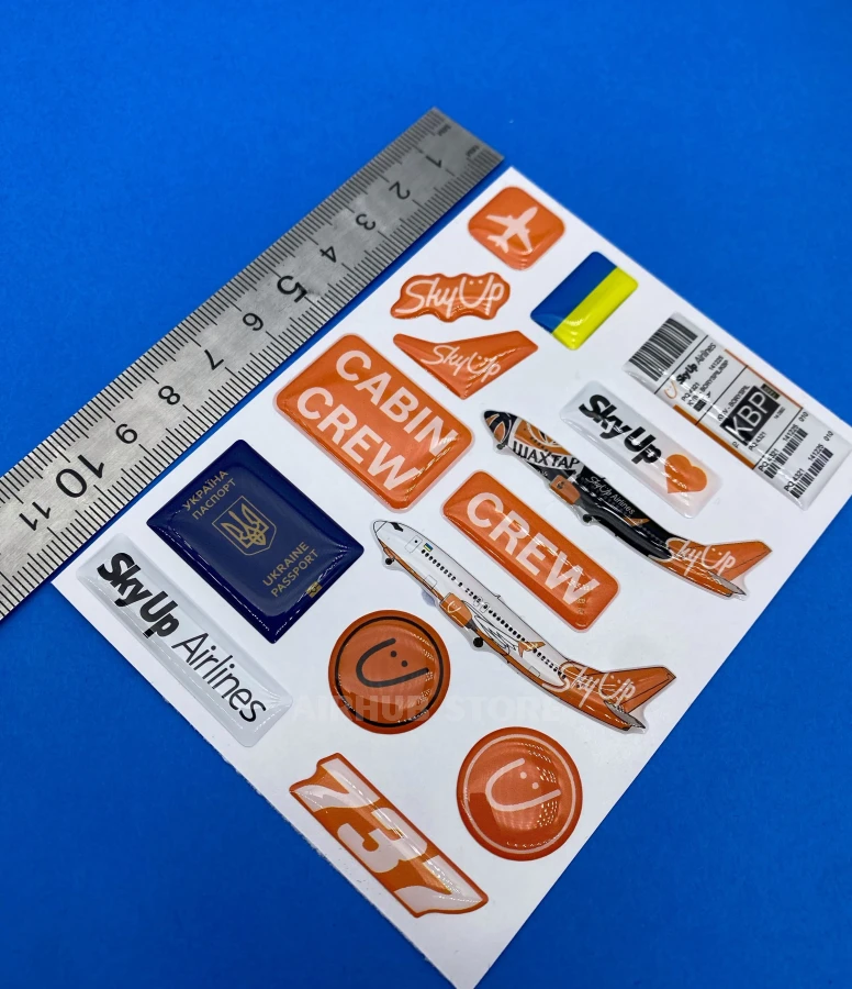 You can order SkyUp Airlines stickers on our website or purchase them in our store at 50b Khreshchatyk Street, Kyiv. We provide fast delivery anywhere in the world and guarantee the quality of every product.
