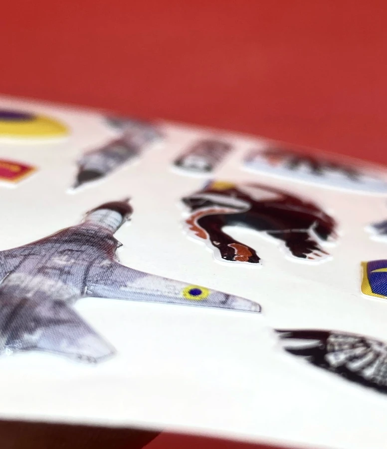 The sticker pack is suitable for laptops, tablets, smartphones, aviation cases, suitcases, notebooks, or workspaces. The stickers look good both in a composition and individually, adding a stern, professional aviation character to your belongings.