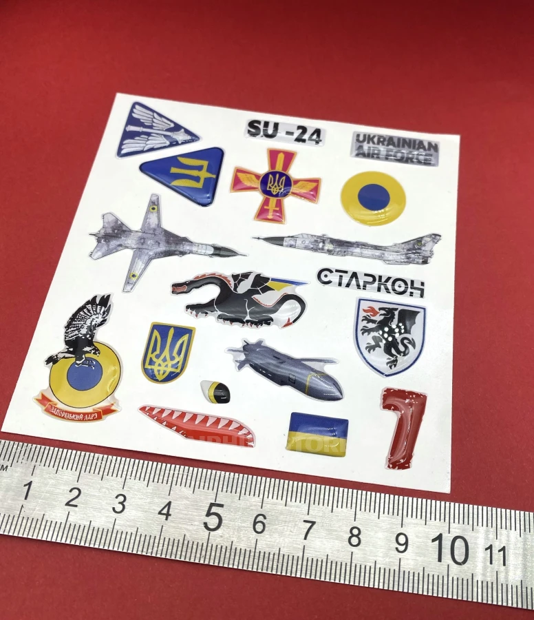 The Su-24 Fencer Sticker Pack is dedicated to a frontline bomber designed for complex and risky missions—flying at extremely low altitudes, breaking through air defenses, and delivering precision strikes deep into enemy territory. The set includes stickers with characteristic Su-24 silhouettes, variable wing geometry, combat numbers, emblems, and symbols of the Ukrainian Air Force.