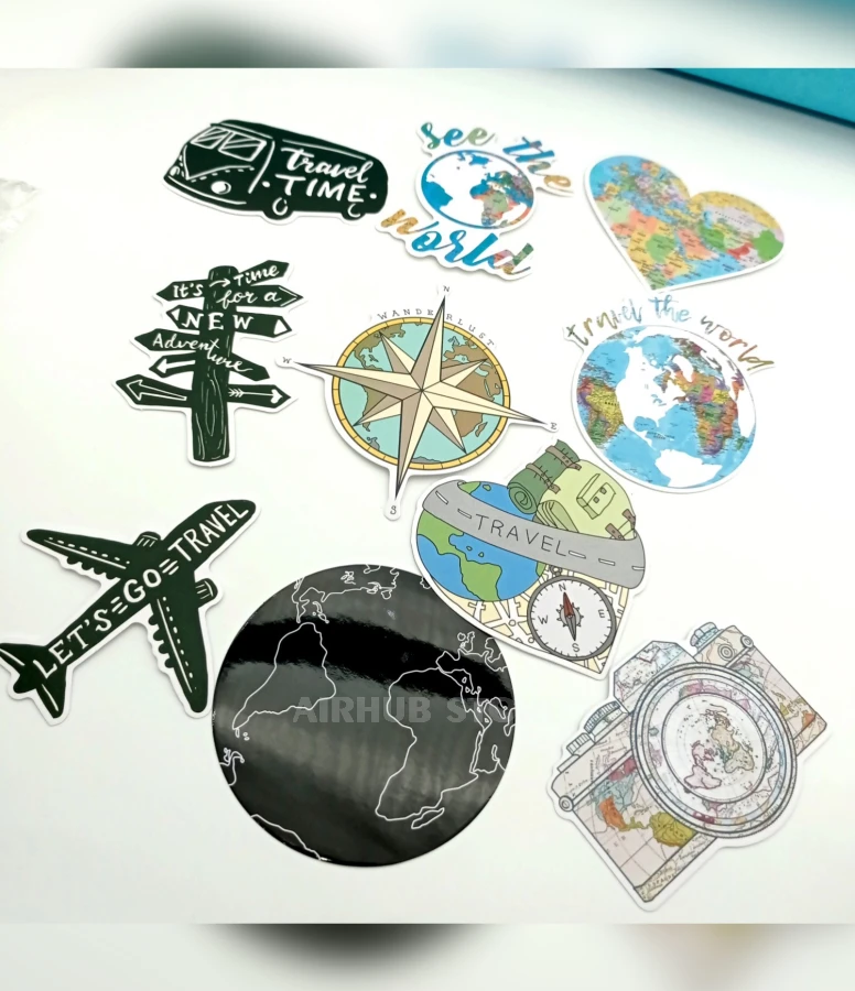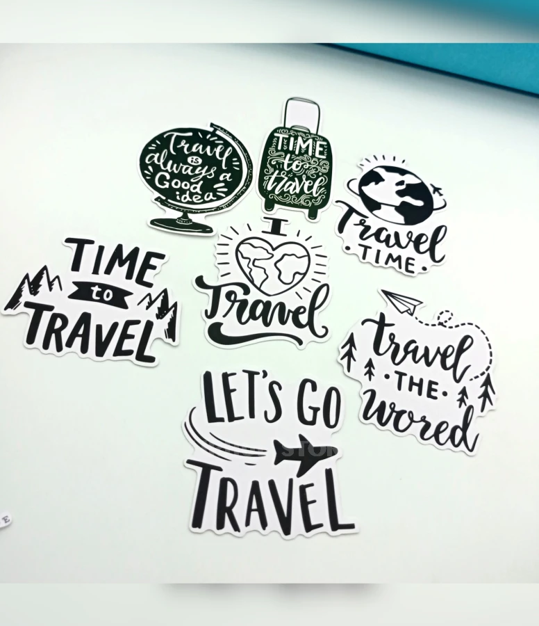 Our Travel sticker set is designed especially for travel enthusiasts who want to share their desire for discovery and adventure. The set contains different shapes and sizes of stickers, which gives you many options for creative decorating.