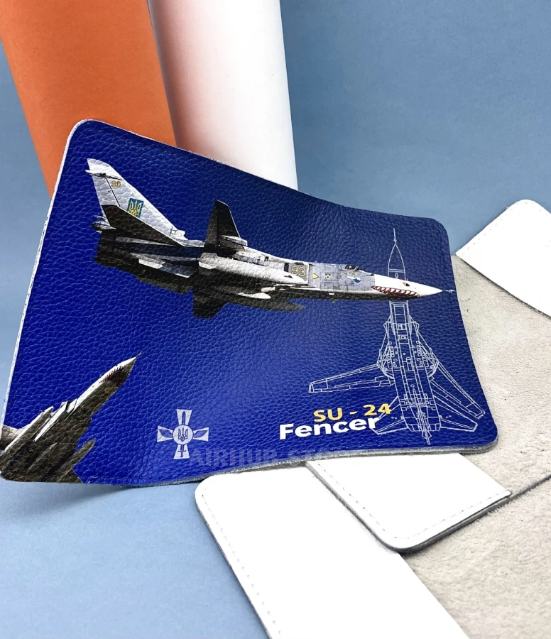 Su-24M is the main bomber aircraft of the Ukrainian Air Force, such a cover is comfortable to use and made of pressed leather! Stylish design with the image of the legendary bomber will not only emphasize your passion for aviation, but also become a recognizable accessory. This is a combination of practicality and personal style, which will be appreciated by fans of military equipment.