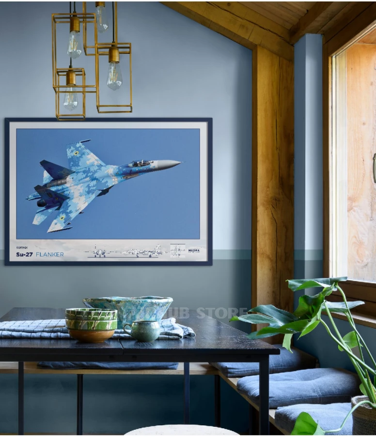 If you are a fan of aviation and are in love with fighter planes, this SU-27 fighter jet poster will be a great addition for your interior. SU-27 is one of the most famous fighter planes in the world, which is famous for its maneuverability and speed.