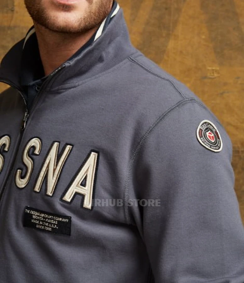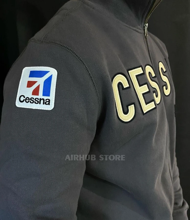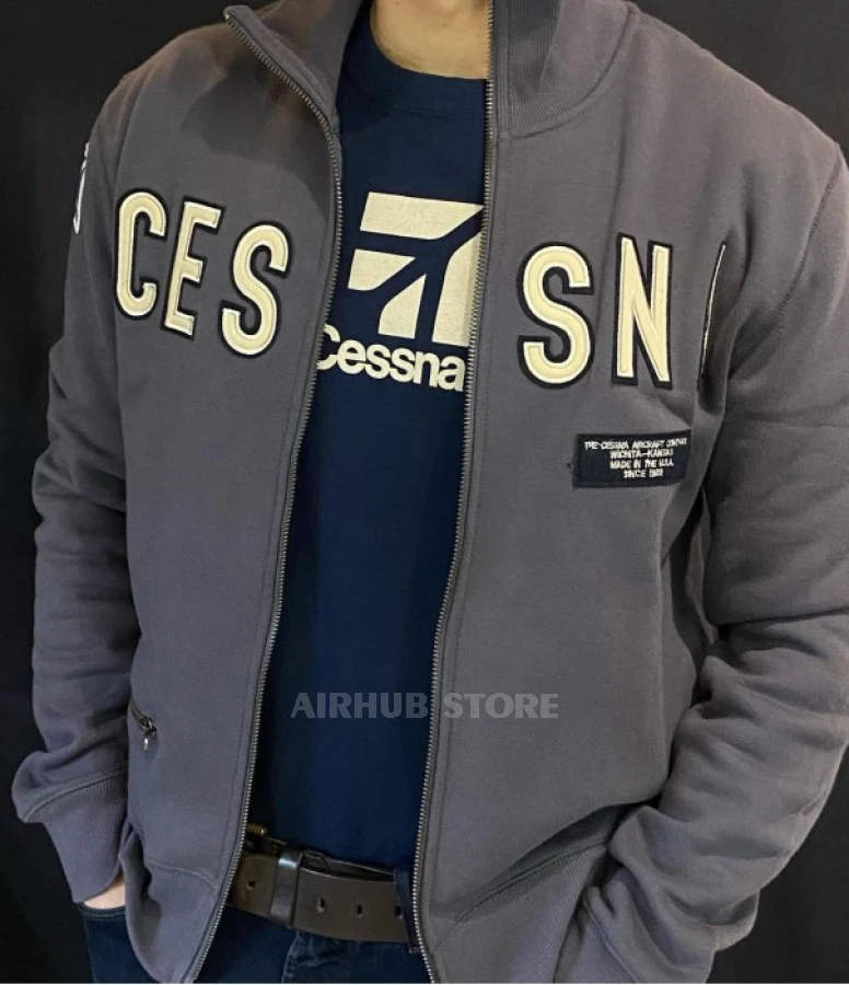 Cessna Zipper Jacket - minimalism, comfort and aviation spirit in every detail. Inspired by the legendary heritage of Cessna, this sweatshirt is designed for those who appreciate quality and aesthetics. The laconic design with exquisite logo embroidery adds elegance, while the classic cut emphasizes your confidence. This is a piece that harmoniously combines aviation history and modern urban style.