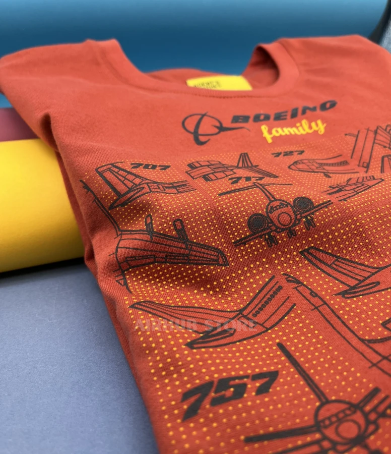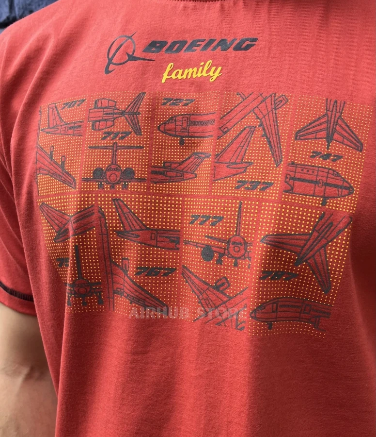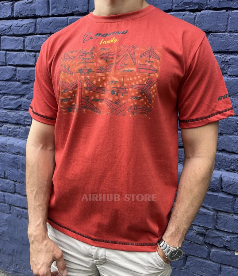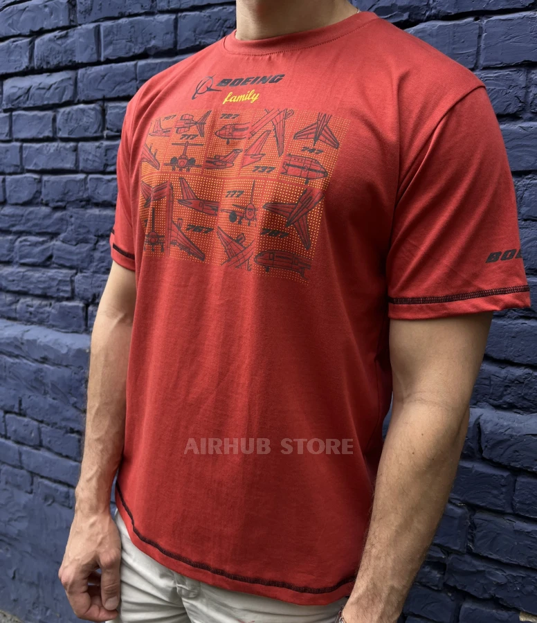 Feel like a part of legendary aviation history with the Boeing Family T-shirt from AirHub Store. This stylish terracotta product combines images of iconic Boeing aircraft that have become symbols of innovation and power. The T-shirt is an ideal choice for those who appreciate quality, style and have a passion for aviation.