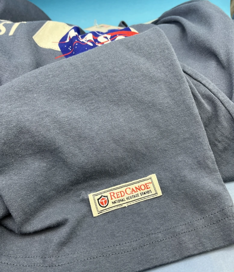 The T-shirt has a ribbed round neckline, which gives it a custom look. After printing, it undergoes a special treatment to achieve a vintage effect. The color is slate, which can be easily combined with other items of clothing.