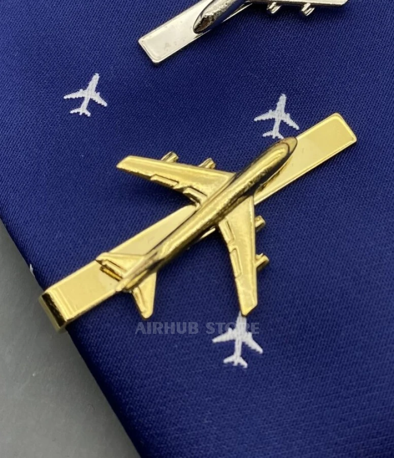 The Boeing B747 tie clip is an elegant accessory that recreates the unique beauty and design of the Boeing B747. Made with attention to detail, this clip reproduces the airplane and its shape. Its stylish look and high quality make it a great gift, especially for aviation enthusiasts or those associated with this wonderful industry. The Boeing 747 Jumbo Jet is the world's first wide-body long-haul passenger aircraft manufactured by the American company Boeing and is often called the Jumbo Jet.