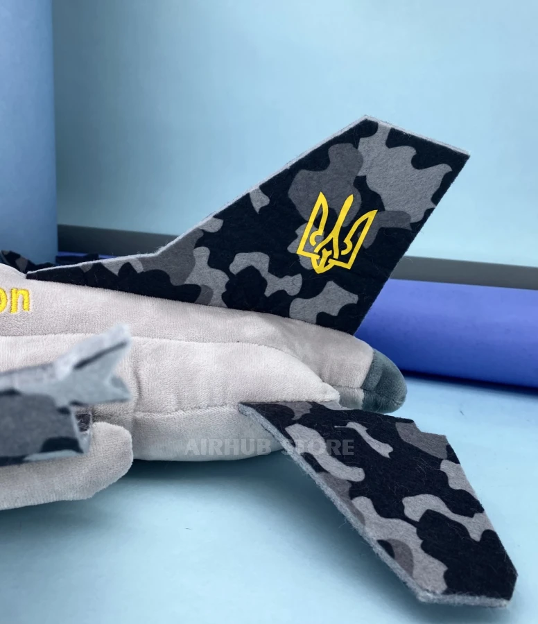 An incredible soft toy of the legendary fighter jet! Its felt inserts make it look even more realistic. This F-16 Fighting Falcon toy is the perfect way to make fantasies of flying and adventure come true. Order it today and give your children this toy for endless hours of fun!