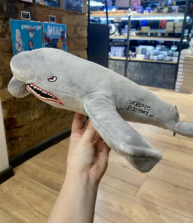 The Shark soft toy replicates one of the most famous Ukrainian reconnaissance UAVs, designed to operate at long distances and transmit clear reconnaissance images. The toy retains the key silhouettes: an elongated nose, tail section, straight wings, and a recognizable shark's mouth with teeth, which has become the unofficial emblem of this drone's combat spirit.