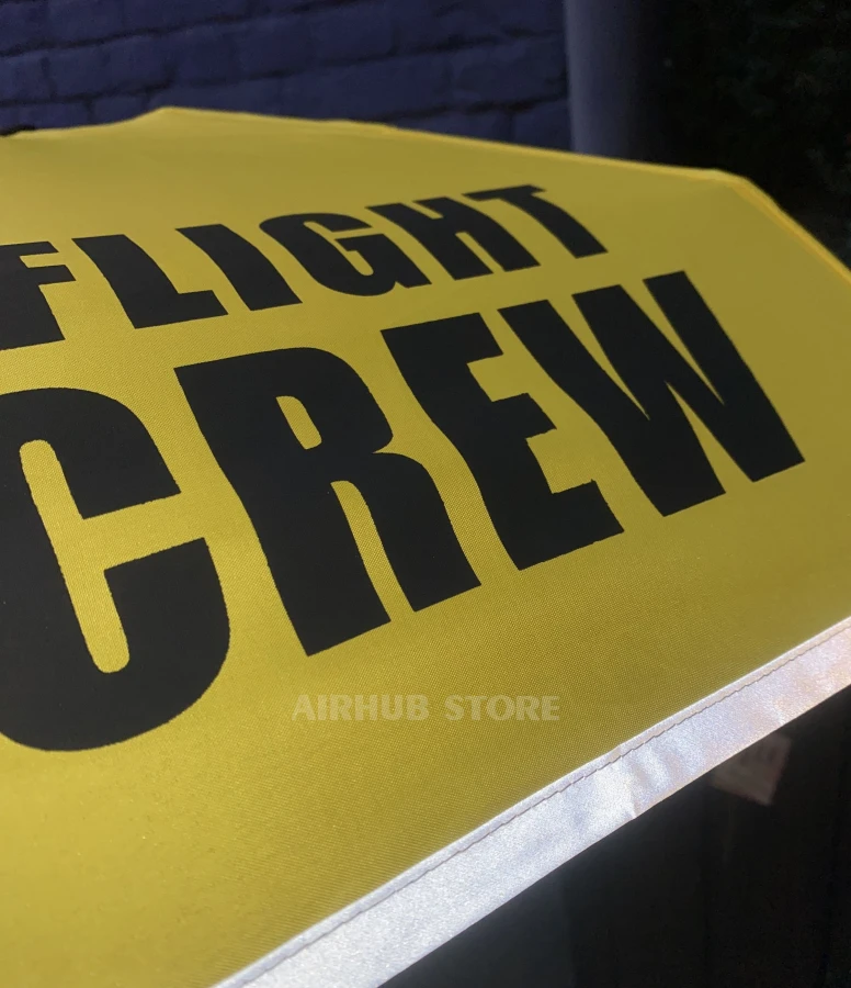 The bright yellow Flight Crew umbrella is designed for those who like to combine practicality and style. It features large contrasting FLIGHT CREW lettering that emphasizes the aviation theme, and a reflective strip around the edges of the canopy for added safety in the dark. The comfortable handle with a loop makes the umbrella comfortable for everyday use, and the compact folding design allows you to easily carry it in a backpack or bag.