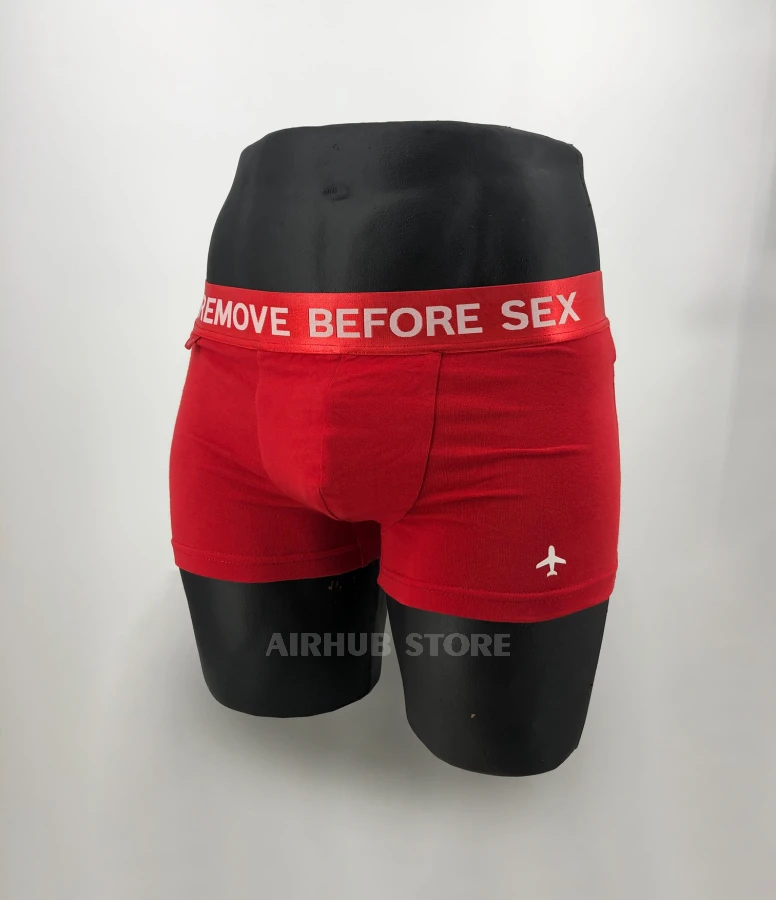 By choosing Remove Before Sex (Red), you add emotion and expression to your image. This is a bold choice for a man who appreciates comfort, style and knows how to remain confident in any situation. Ready for new experiences? Then this underwear is just for you!