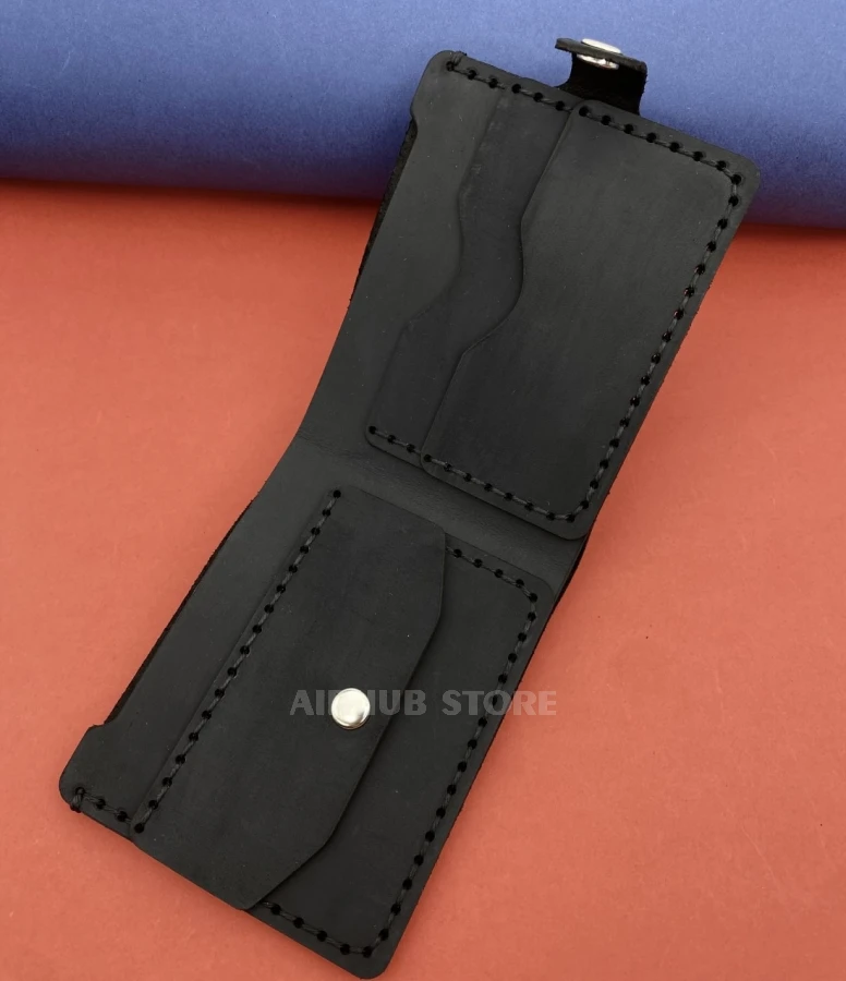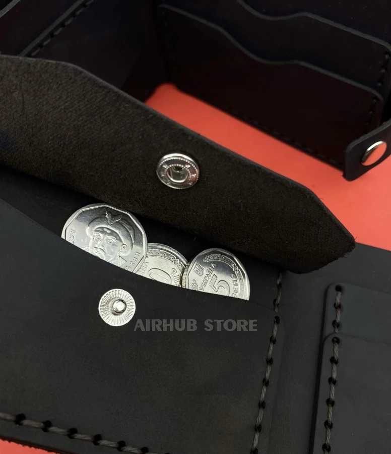 A handmade leather wallet that combines minimalist design and high functionality. Made of high-quality genuine leather, this wallet provides durability and a pleasant tactile sensation.