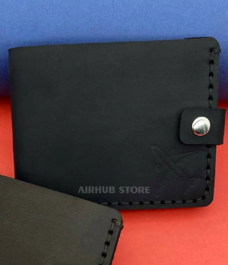 The wallet has convenient compartments for banknotes, credit cards and coins. Thanks to the strong button and dense material, your belongings will always be safe. The original embossing in the form of an airplane adds a special charm to the product, emphasizing the aviation style and individuality. This leather wallet is ideal for both men and women, and will be a great gift for loved ones or for yourself. Feel the real quality and style with our wallet, which will become your indispensable accessory for every day.