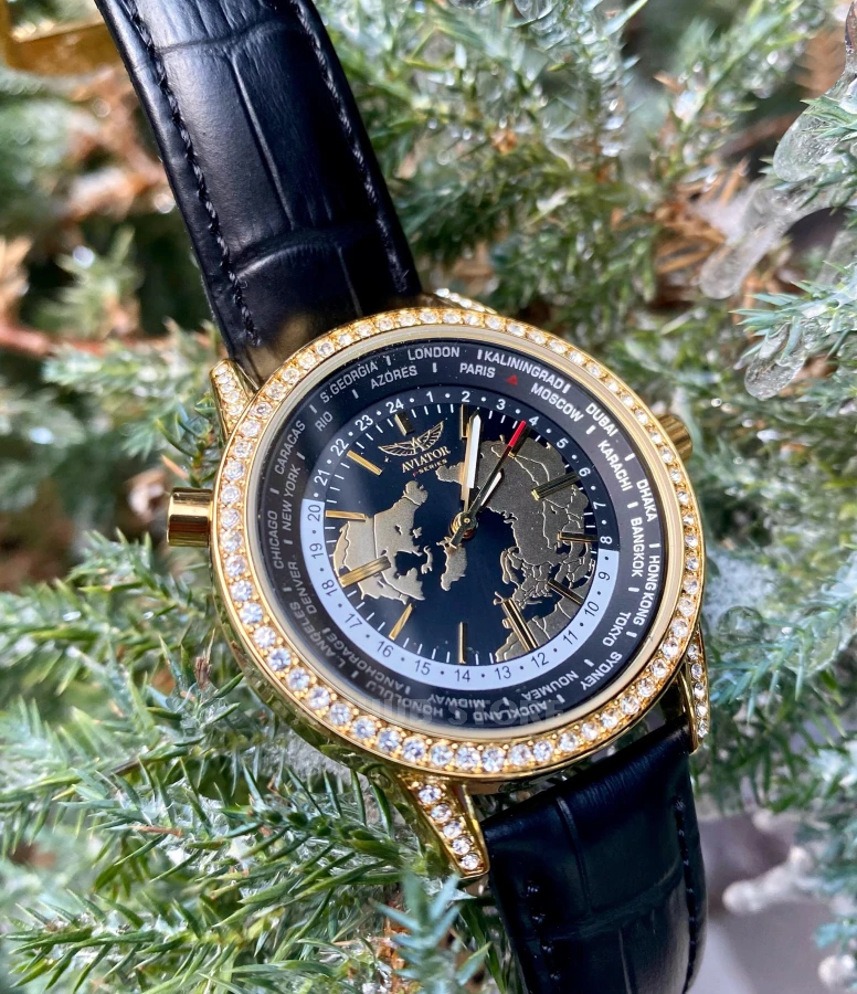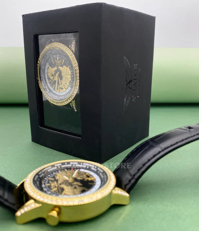 You can buy AVIATOR F-Series gold world with zirconia stones (AVW8633L03) on our website or by visiting the store at: 50b Khreshchatyk St., Kyiv, Ukraine. We offer fast delivery worldwide and guarantee the high quality of each product.