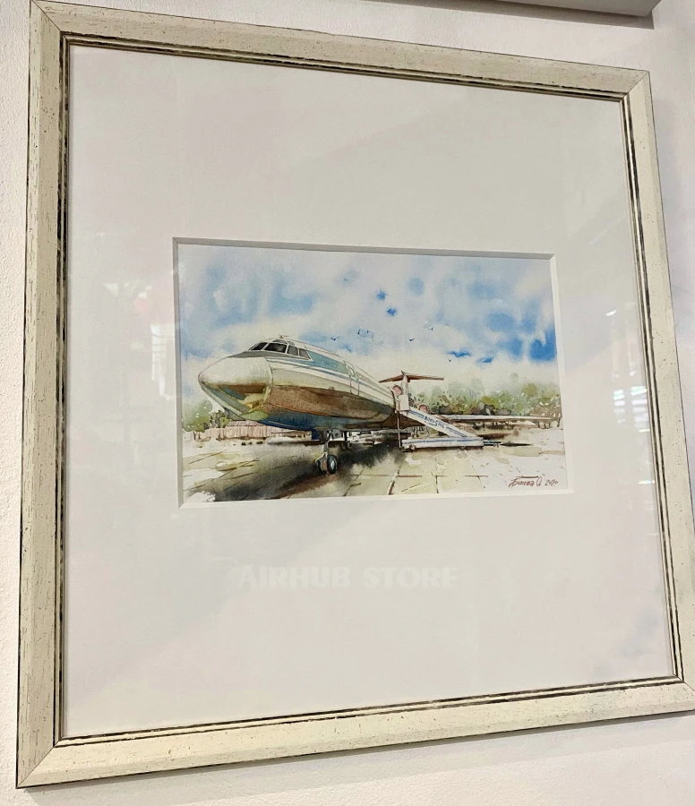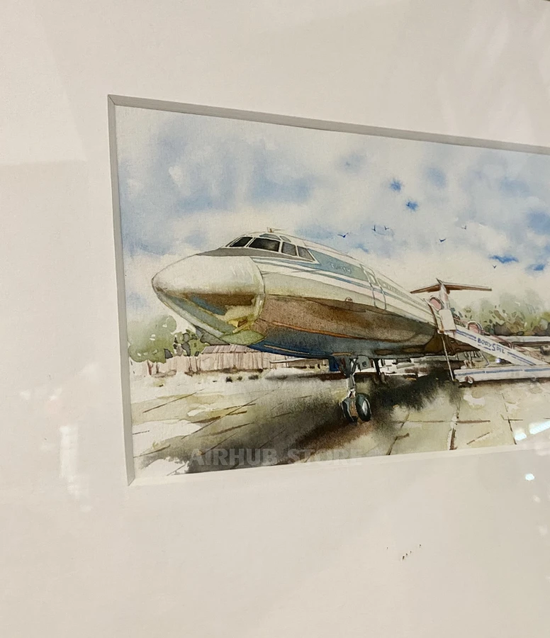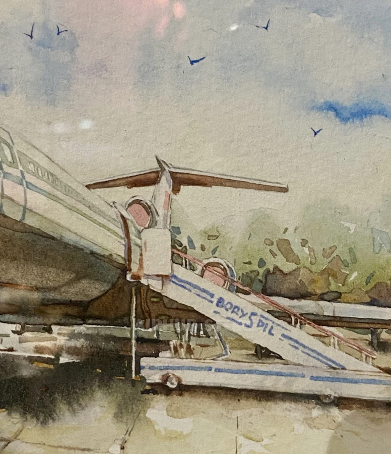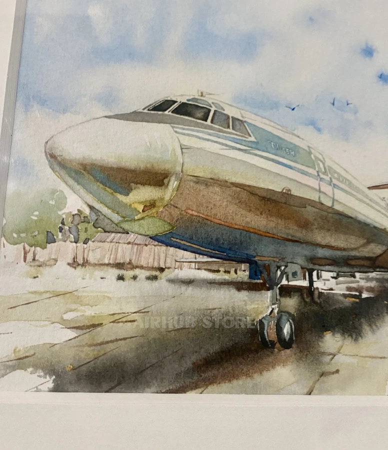This watercolor depicts a Tu-154 - the aircraft was painted from life during an outdoor painting session at the Aviation Museum in Zhuliany.