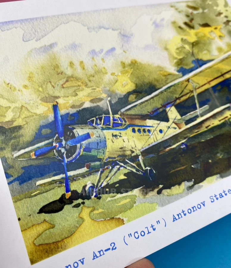 Watercolor postcards with airplanes Aviation Museum (AN2 , Cardboard)