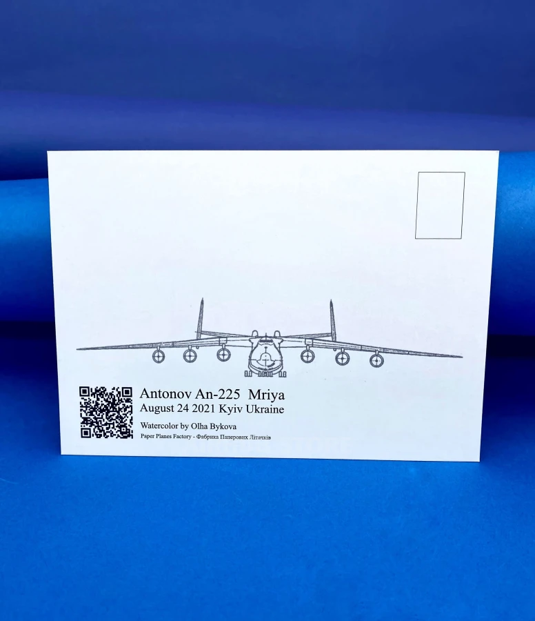 You can order the AN-225 Mriya postcard on our website or purchase it at our store at 50b Khreshchatyk Street, Kyiv. We provide fast delivery anywhere in the world and guarantee the quality of every product.