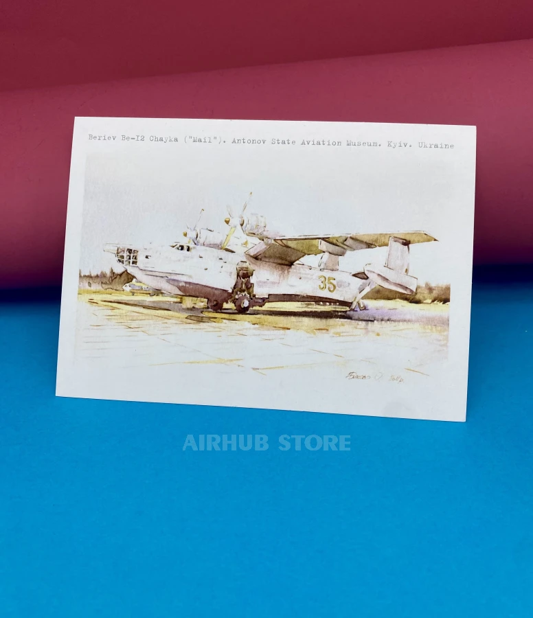Watercolor postcards with airplanes Aviation Museum (Be-12 Mail , Cardboard)