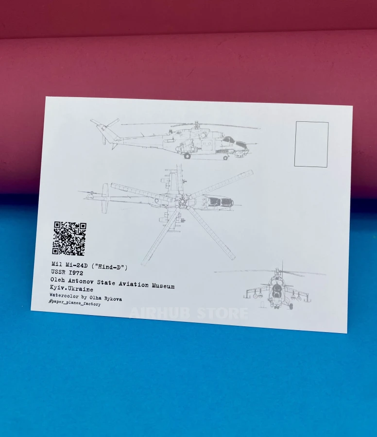 Watercolor postcards with airplanes Aviation Museum (MI-24 HIND , Cardboard)