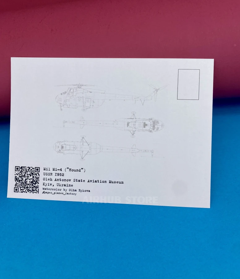 Watercolor postcards with airplanes Aviation Museum (MI-4 Hound , Cardboard)