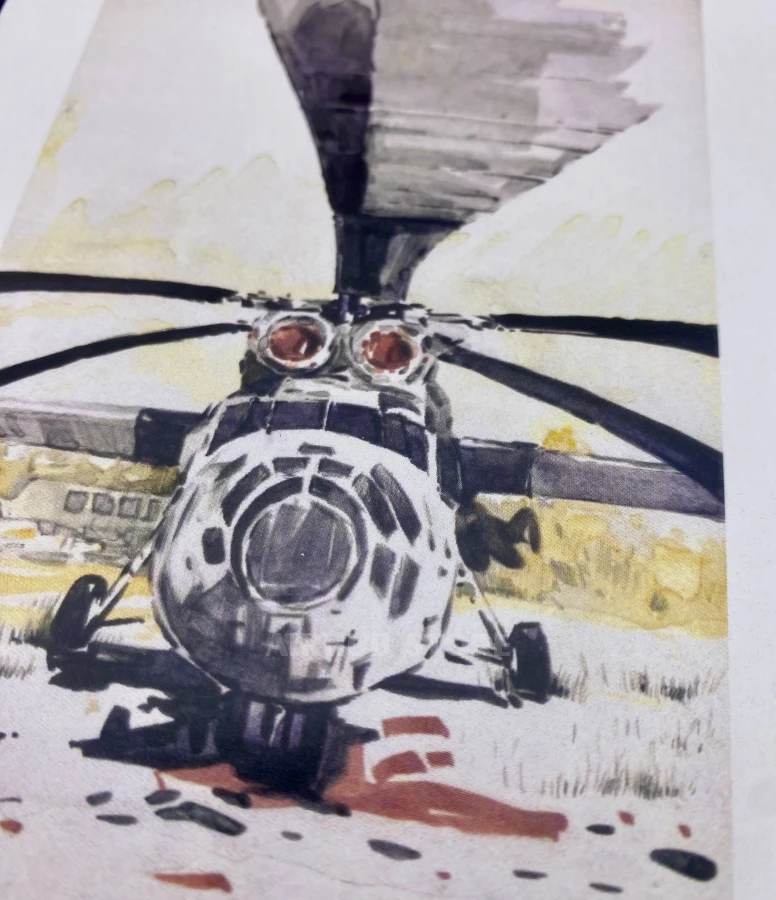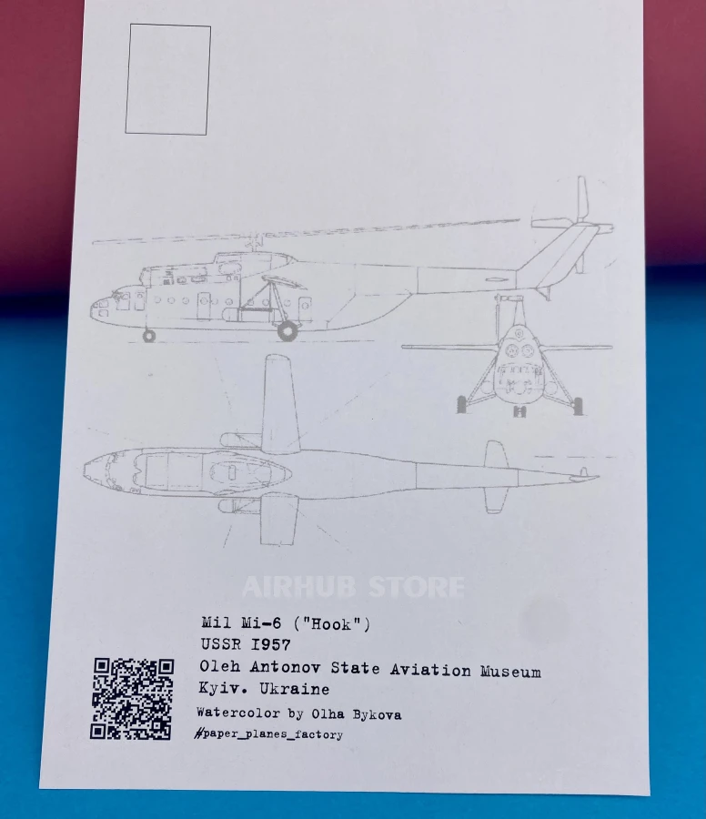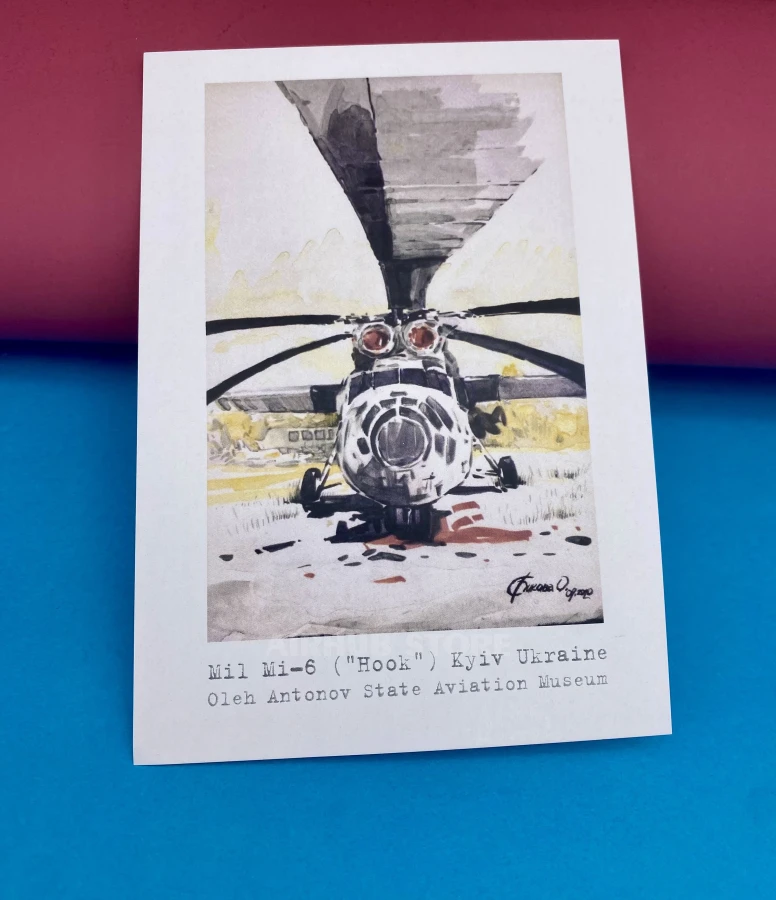 Watercolor postcards with airplanes Aviation Museum (MI-6 Hook , Cardboard)