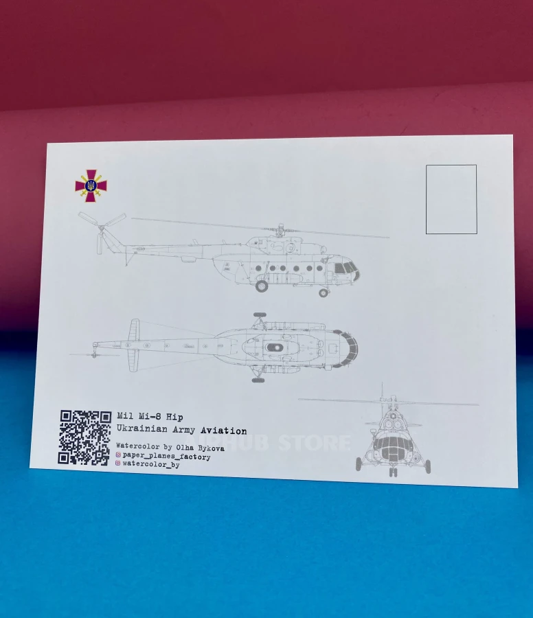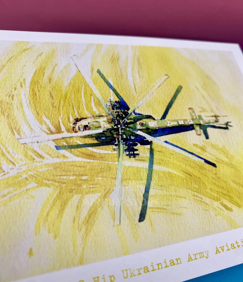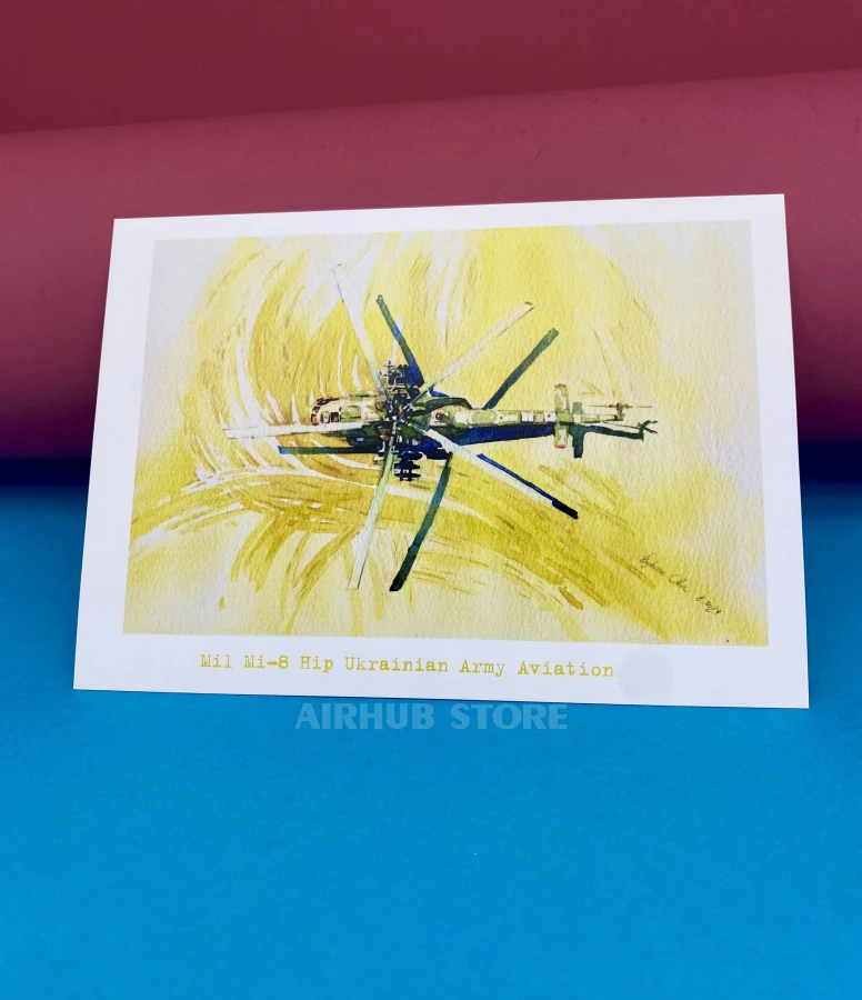 Watercolor postcards Ukrainian Air Force (MI-8 HIP , Cardboard)