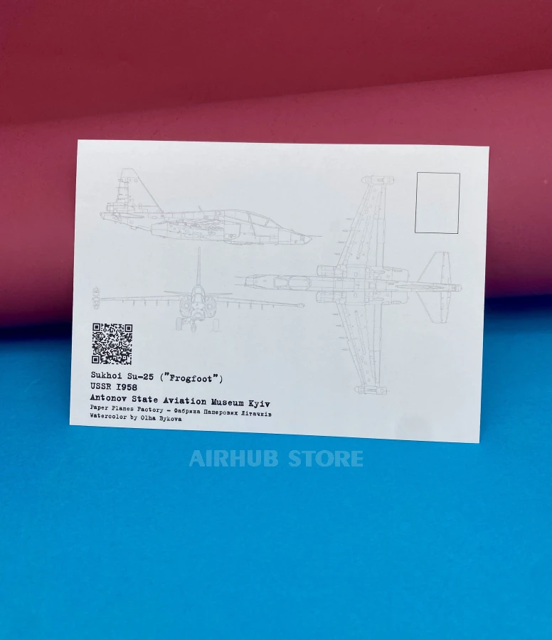 Watercolor postcards with airplanes Aviation Museum (Su-25 Frogfoot , Cardboard)