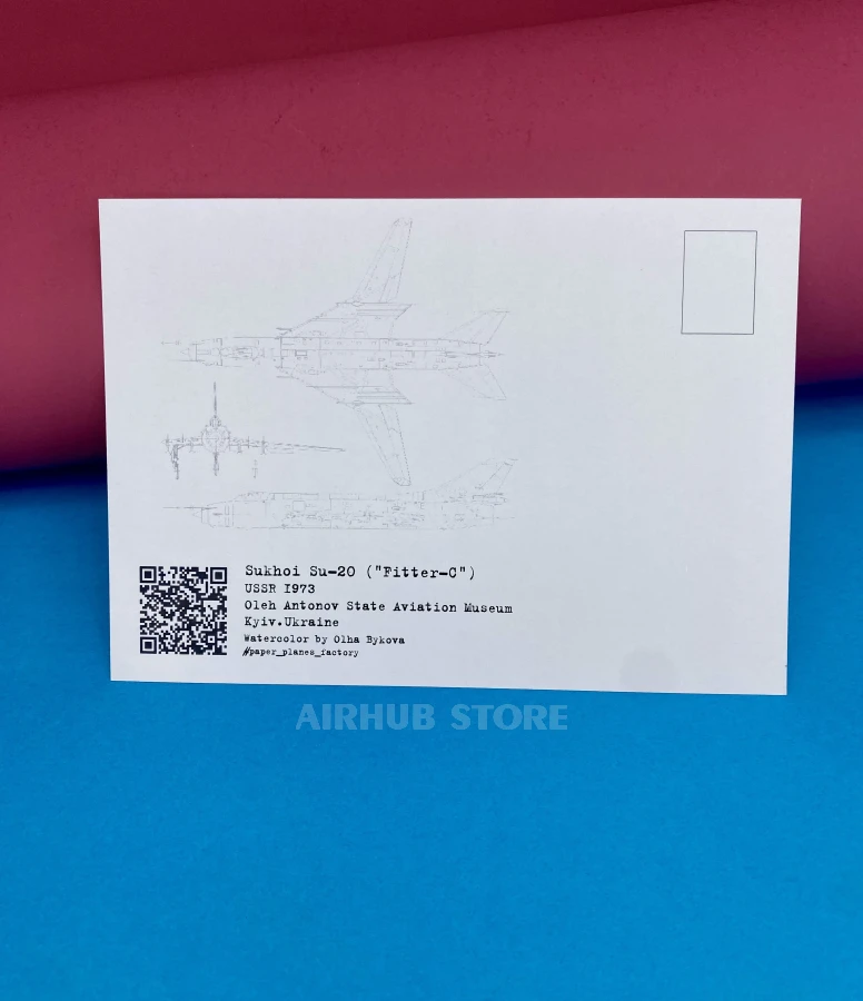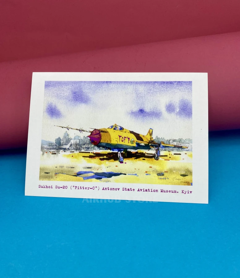 Watercolor postcards with airplanes Aviation Museum (Su-20 Fitter , Cardboard)