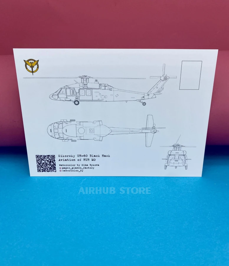 The print preserves the character of the artwork, so the postcard looks like a miniature reproduction of the original watercolor. It is suitable for sending, storing in a collection, or framing as a small aviation art object related to the theme of the Ukrainian Air Force.