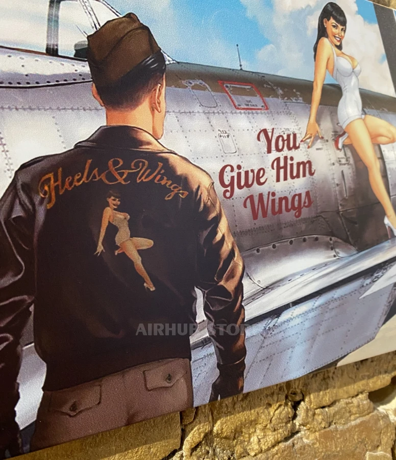 This work reflects the golden age of aviation and pin-up art, when airplanes were a symbol of power and posters inspired pilots. The You Give Him Wings poster will not only be a decorative element, but also an atmospheric detail that creates a sense of history and the romance of flight.