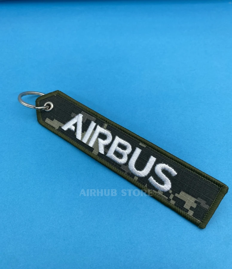 This textile keychain is made in the format of classic aviation ribbons used in airports and on airplanes. The camouflage background gives the accessory a distinctive character, and the dense embroidery ensures durability even with active use. The metal ring allows you to easily attach the keychain to your keys or equipment.