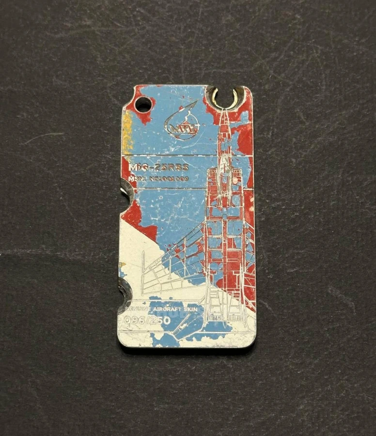 В начале 2000-х, после окончательного завершения службы МиГ-25 в составе украинских вооруженных сил, этот самолет был передан в Государственный авиационный музей имени Олега Антонова. В ходе реставрации вертикального стабилизатора команда Fuselage Creations смогла сохранить часть обшивки и превратить её в памятные брелки. Именно поэтому этот брелок — не просто аксессуар, а настоящий кусочек авиационной истории, который позволяет буквально прикоснуться к легенде.