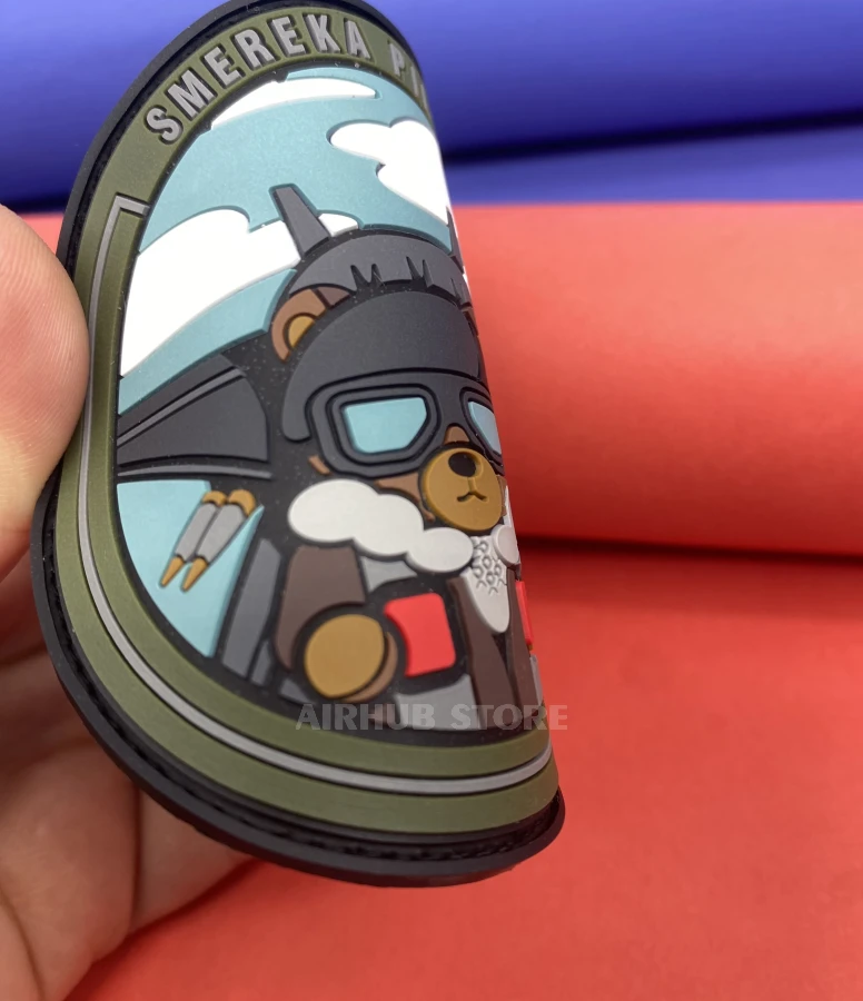 Особливу роль у його історії має маленький ведмедик-оберіг. Цю іграшку пілоту подарували друзі, з 2018 року вона літає разом із ним на бойових завданнях. Саме цей образ ліг в основу дизайну нашивки: ведмедик у шоломі, окулярах і куртці пілота зображений на фоні бойового літака. Ведмідь обраний не випадково - це уособлення сили, витривалості й водночас доброго характеру. У такій символіці поєднані риси, які найбільше асоціюються із самим Смерекою: мужність у бою та щирість у повсякденному житті.