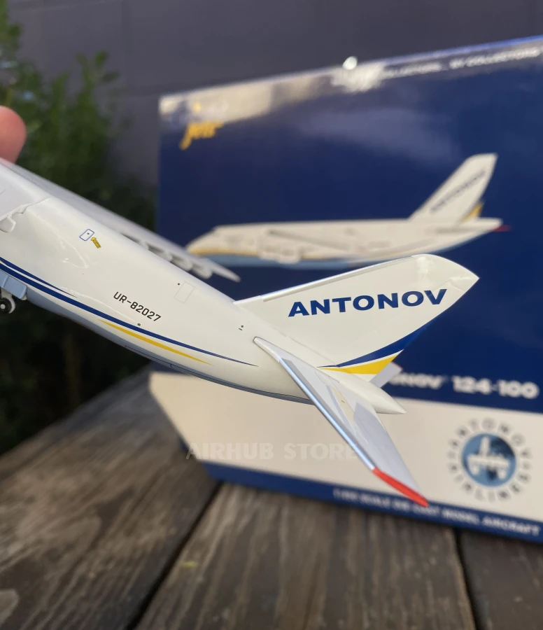 Антонов АН-124 Руслан - один з найбільших транспортних літаків у світі, справжня легенда української авіації. Представлена модель в масштабі 1:400 від Gemini Jets виготовлена з литого металу (die-cast) і відрізняється високою точністю пропорцій і деталей. На моделі відтворена автентична ліврея Antonov Airlines з характерними синьо-жовтими елементами і реєстраційним номером борту UR-82027.