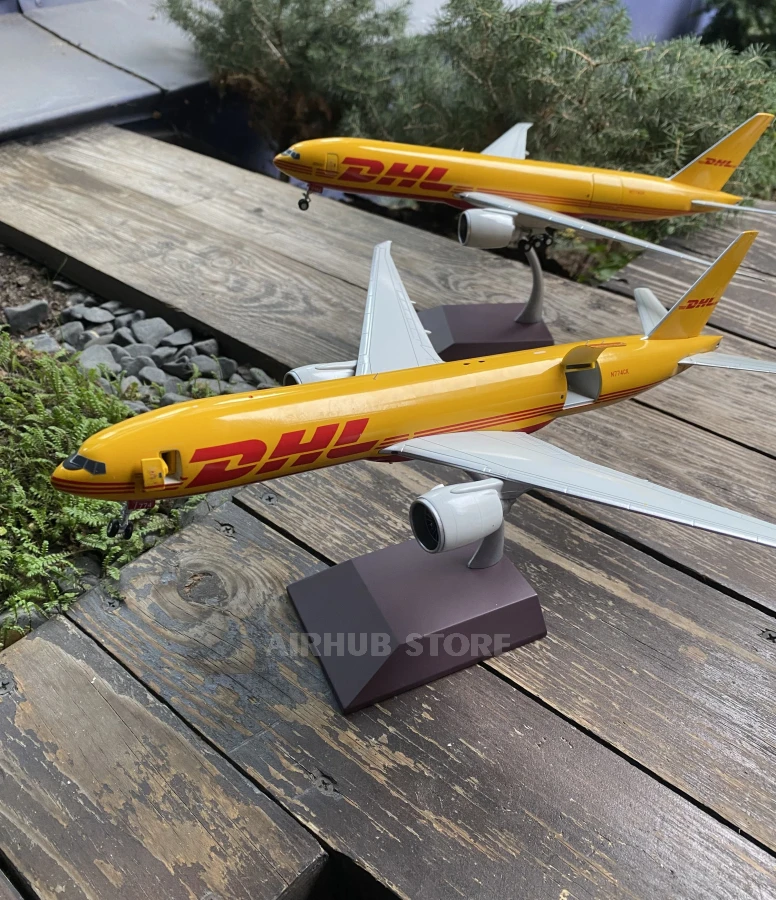 Boeing 777F у лівреї DHL - один із найвідоміших вантажних літаків у світі, символ глобальної логістики та стабільності доставки. Борт N774CK працює в міжнародній мережі DHL, виконуючи далекомагістральні рейси з великими обсягами вантажу. Модель у масштабі 1:200 відтворює цей літак з акцентом на головну особливість вантажної авіації - роботу вантажних люків та відсіків.