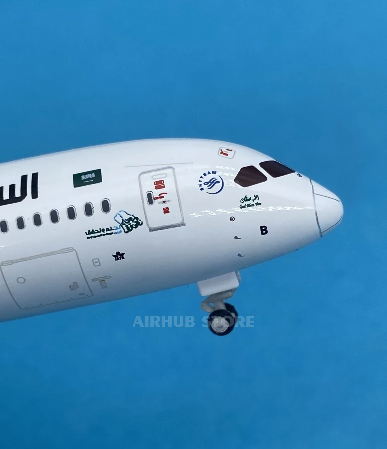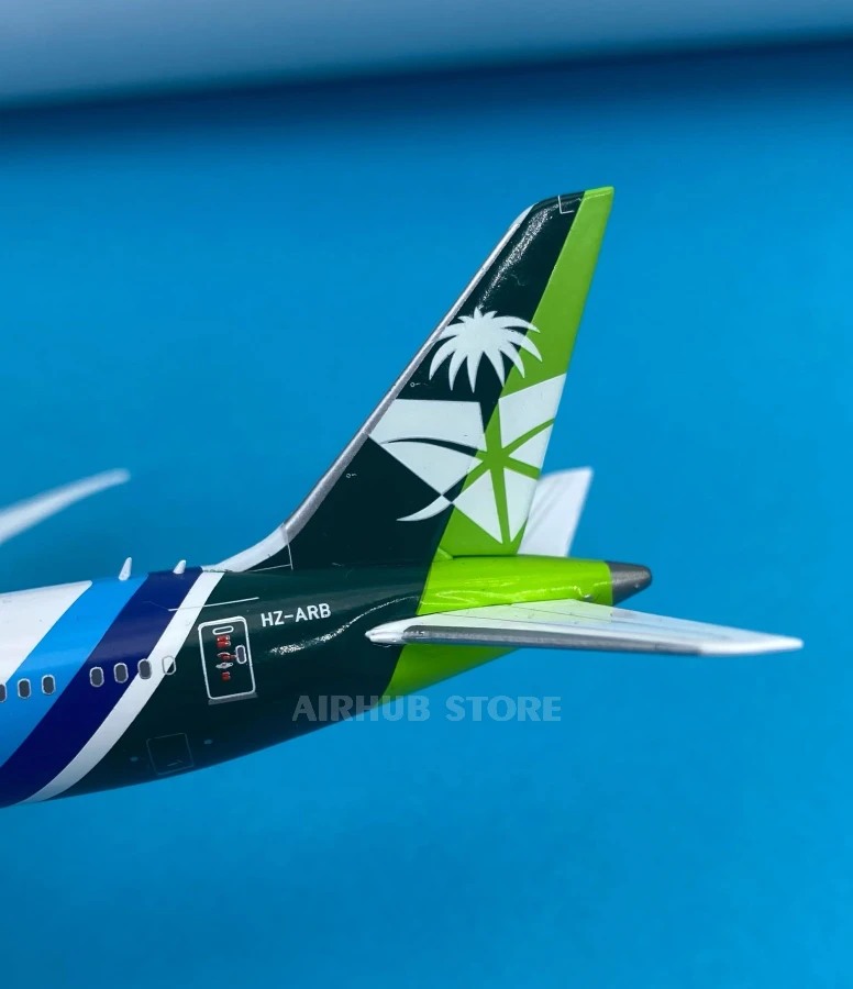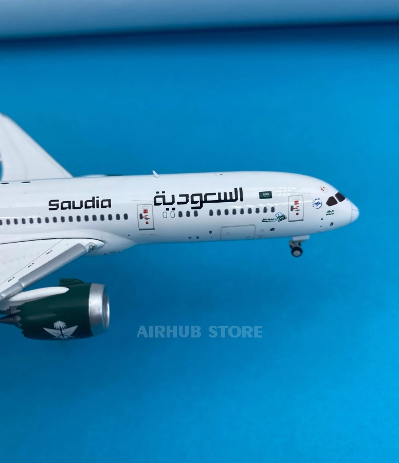 Цей Boeing 787-9 Dreamliner у масштабі 1:400 представляє борт HZ-ARB Saudi Arabian Airlines, розфарбований до національного Дня Саудівської Аравії. Саме ця ліврея привернула увагу спотерів по всьому світу! Saudi Arabian Airlines активно оновлює флот, і саме Dreamliner став основою їхніх далеких маршрутів.