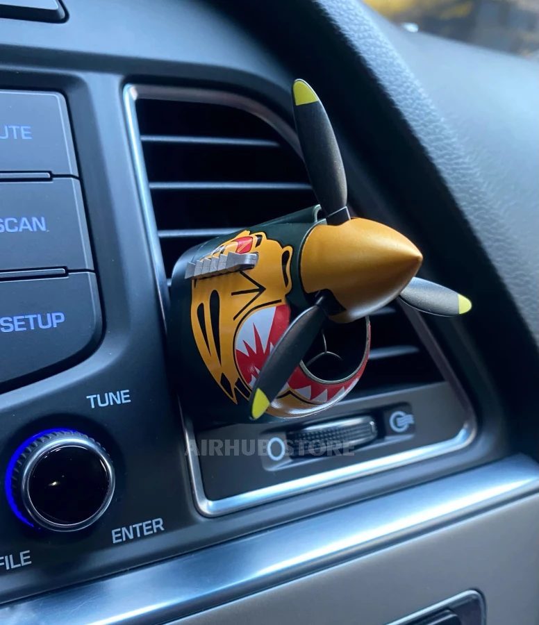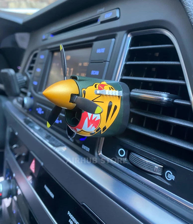 The air freshener is installed on the car's ventilation grille and combines practicality with decorative appeal. This aviation air freshener is suitable for car enthusiasts, AvGeeks, pilots, mechanics, and anyone who appreciates aviation style in the details. The Tiger airplane is an easy way to show your interest in aviation even on everyday trips.