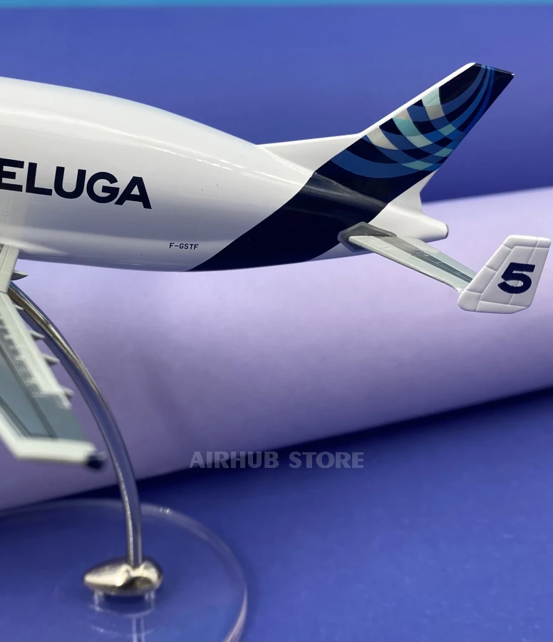 The tail of the Airbus A300-600ST Beluga bears the number 5, indicating its serial number in the fleet of five aircraft of this type. This particular aircraft has the registration number F-GSTF and is the fifth and last example of the Beluga model produced for Airbus. Thus, the number 5 on the tail of the model is not just a decorative element, but an accurate reproduction of the real F-GSTF board, which adds authenticity and collector value to the model.