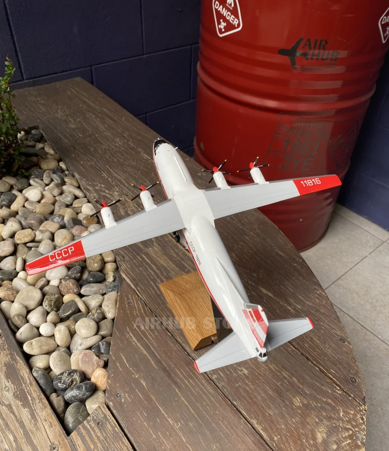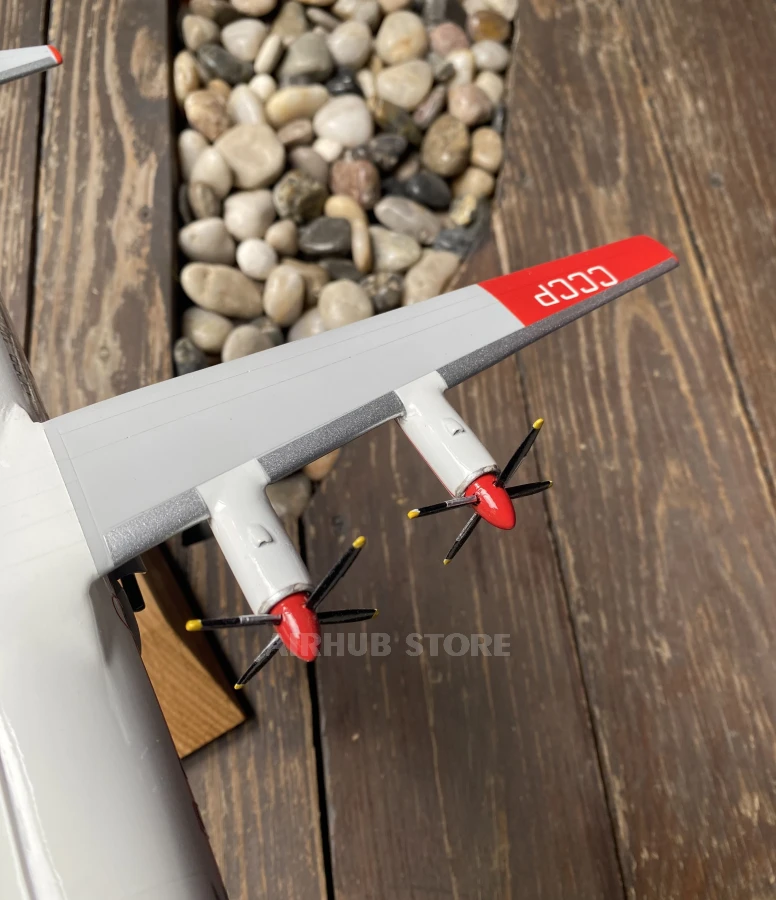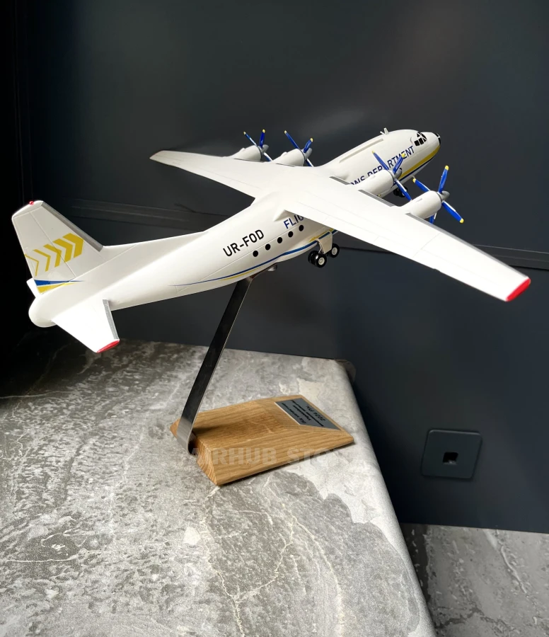 The Cavok Air AN-12 transport airplane model is a great choice for collectors, aviation enthusiasts and fans of Ukrainian aviation. This scale model of one of the most powerful Soviet turboprop aircraft still operated by the Ukrainian air carrier Cavok Air.