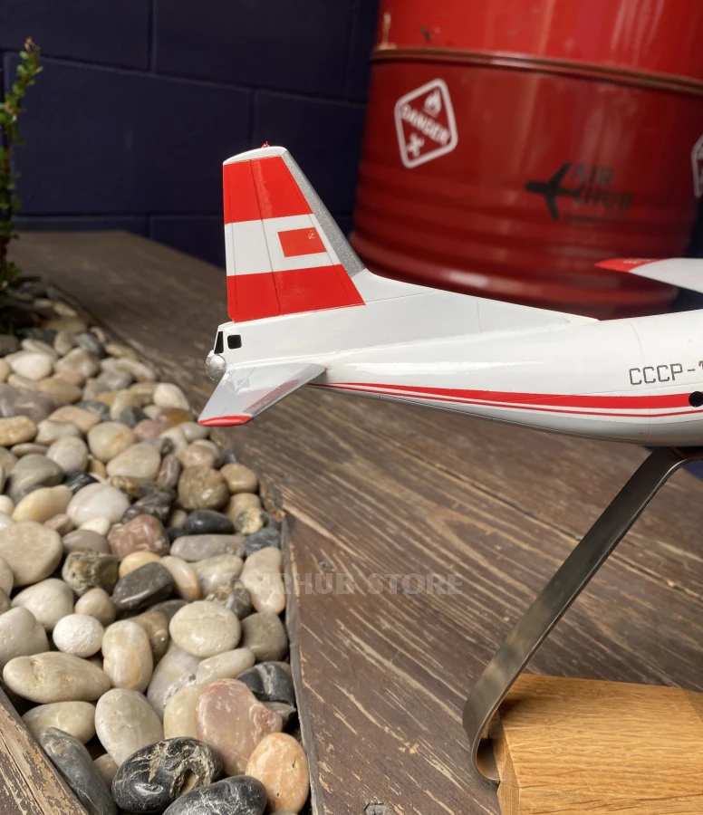 A rare An-12 model in Aeroflot's Polar Aviation livery (CCCP-04366), a replica of the legendary Soviet turboprop transport aircraft.