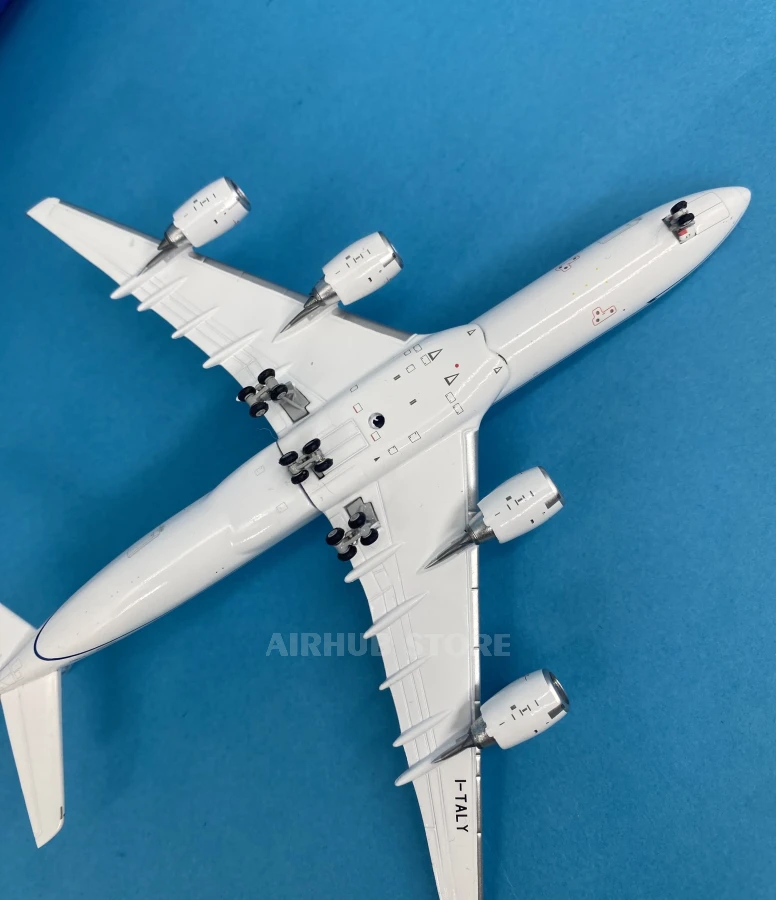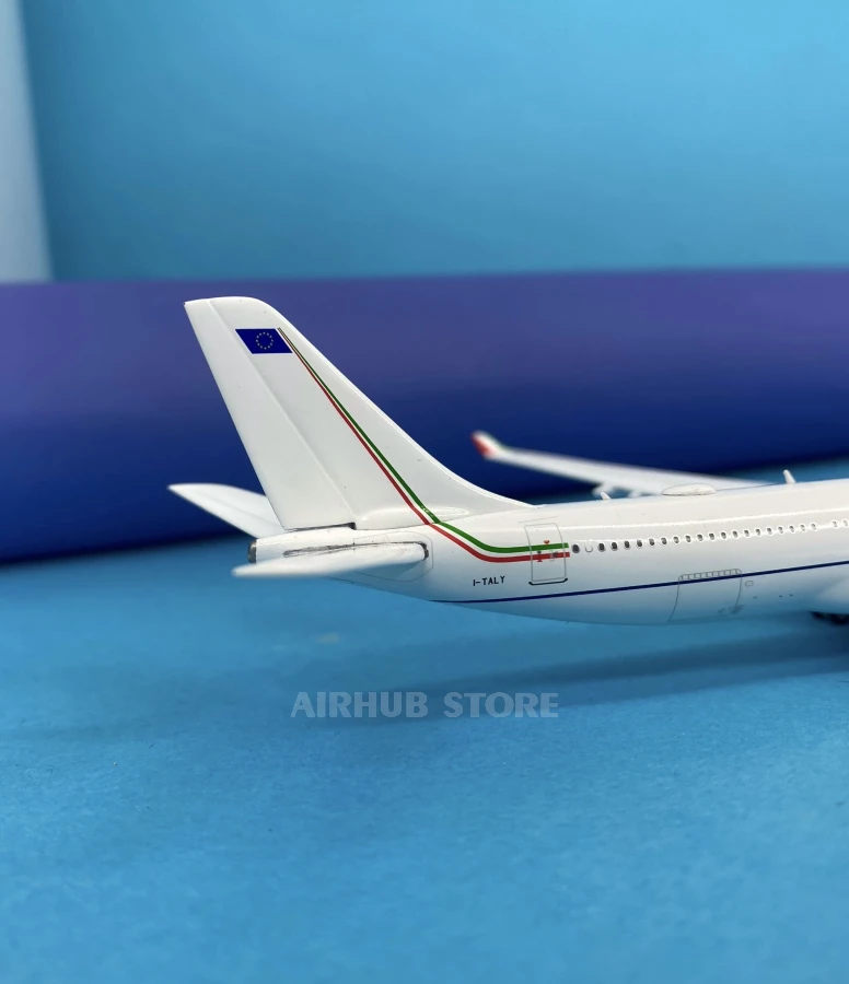 The aircraft with the registration I-TALY, used by the Italian government under the Repubblica Italiana brand, has a special status. This aircraft serves as a government airliner for official trips and state visits, becoming a symbol of diplomacy and national prestige. Its recognizable feature is its elegant white and blue livery with the inscription Repubblica Italiana. The 1:400 scale model reproduces all the features of the real aircraft: accurate coloring and markings with the I-TALY registration; realistic proportions of the fuselage and four engines; detailed landing gear, wings, and fuselage. This model will be a real highlight of your collection, as it combines aviation technology and elements of political history.
