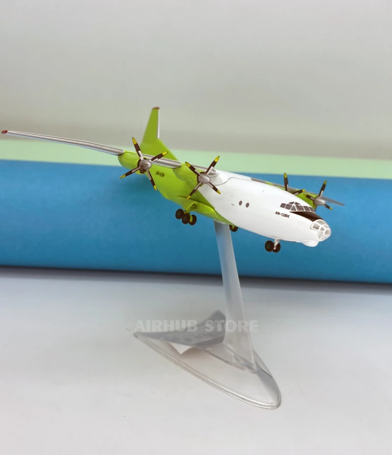 The Antonov AN-12 Cavok model is a legendary Ukrainian cargo airplane that has become a symbol of reliability and power. Made of durable plastic (1:200 scale), it accurately reproduces the characteristic outlines, AI-20 engines and the Cavok branded livery.
