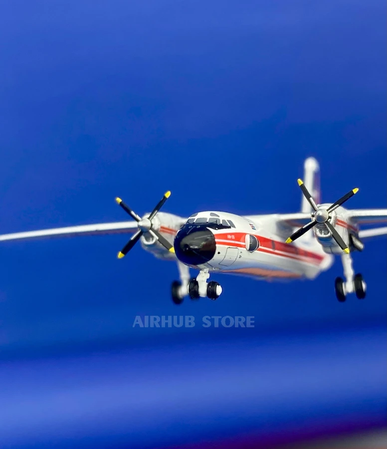 The Antonov An-26 model in 1:400 scale is an excellent replica of a military transport aircraft that serves in the Ukrainian Air Force. This turboprop aircraft, the An-26, is known for its reliability and versatility.