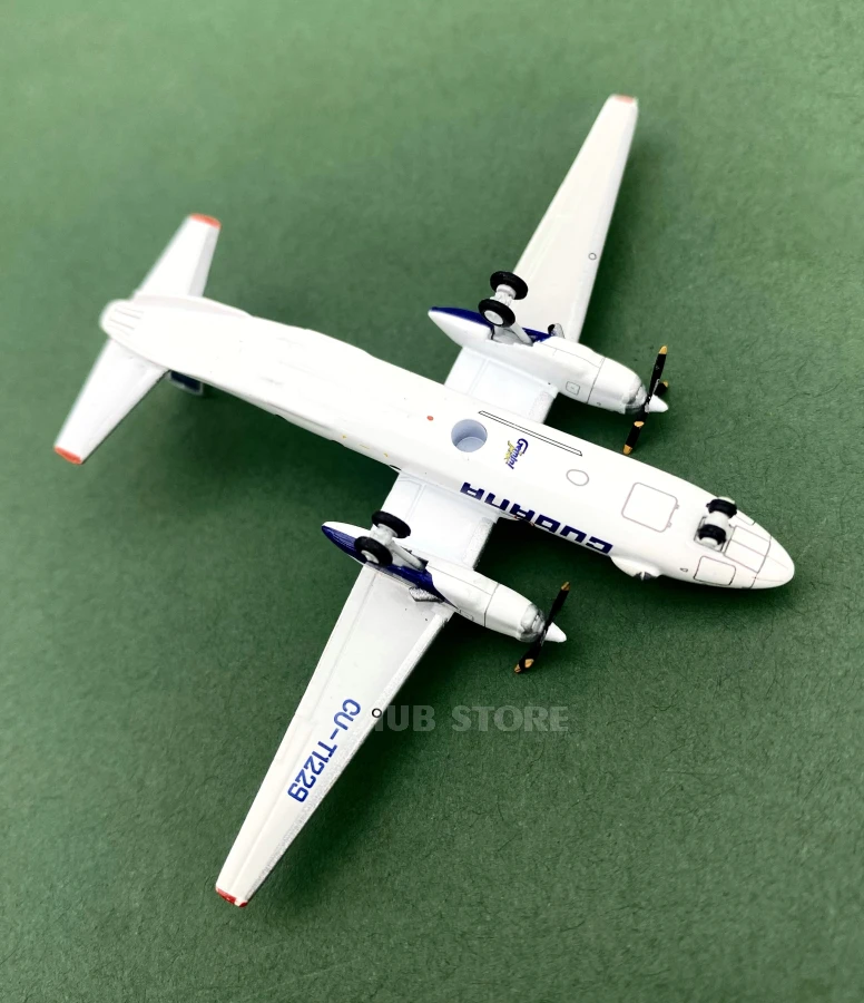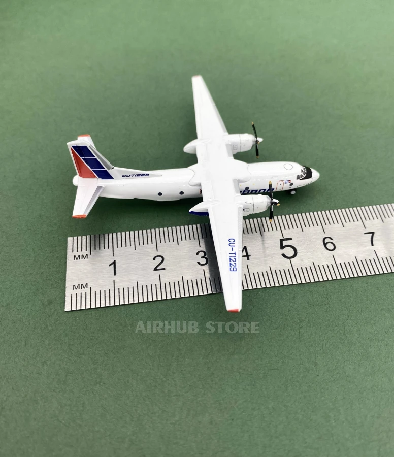 The Antonov AN-12 Cavok model is a legendary Ukrainian cargo airplane that has become a symbol of reliability and power. Made of durable plastic (1:200 scale), it accurately reproduces the characteristic outlines, AI-20 engines and the Cavok branded livery.