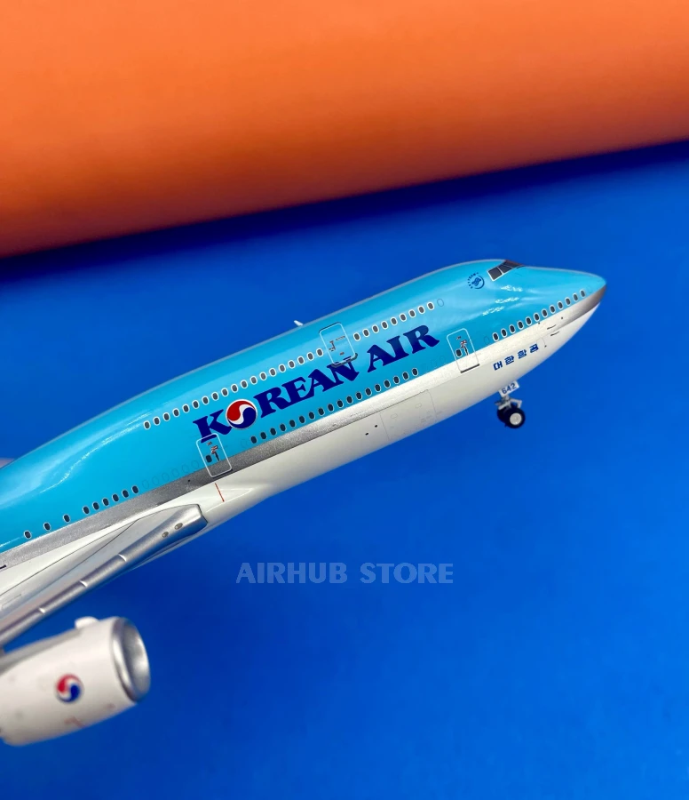 The majestic king of the skies in its blue livery, this Korean Air Boeing 747-8i immediately catches the eye with its size and elegance. The model conveys the feeling of long-haul flights and the status of the fleet's flagship.