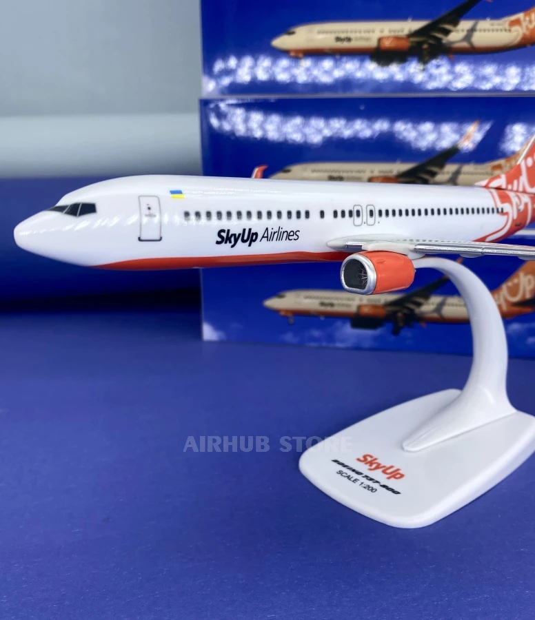 This realistic model of a Boeing 737-800 in SkyUp Airlines livery is not just a souvenir, but a real piece of Ukrainian sky. SkyUp logo with a smile on the keel, and the bright orange engines instantly evoke associations with vacations and flights with the Ukrainian carrier.