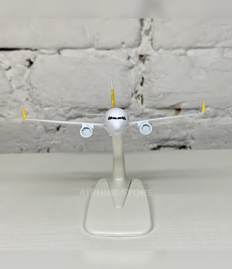 Scale model of a long-haul Boeing 767-300ER passenger aircraft in the corporate colors of the Ukrainian airline UIA (Ukraine International Airlines). The highly detailed replica accurately reflects the features of the real aircraft. Ideal for 1:400 scale collectors, aviation enthusiasts and civil aviation fans