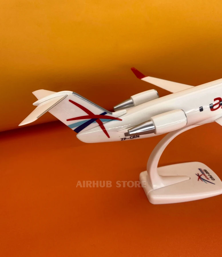 CRJ-200 in the colorful design of the South American airline Amaszonas Paraguay. This compact airplane is designed for short and medium-haul routes, and its large-scale replica is a real gift for civil aviation enthusiasts and exotic carriers.