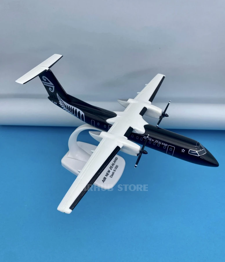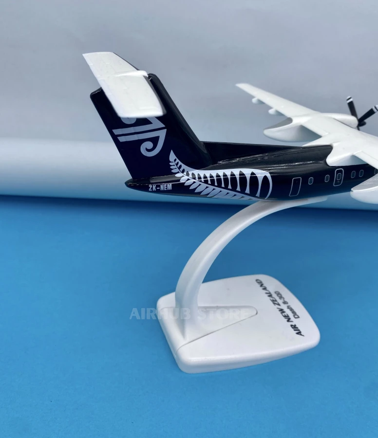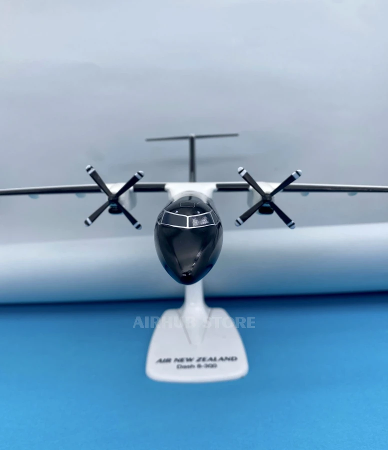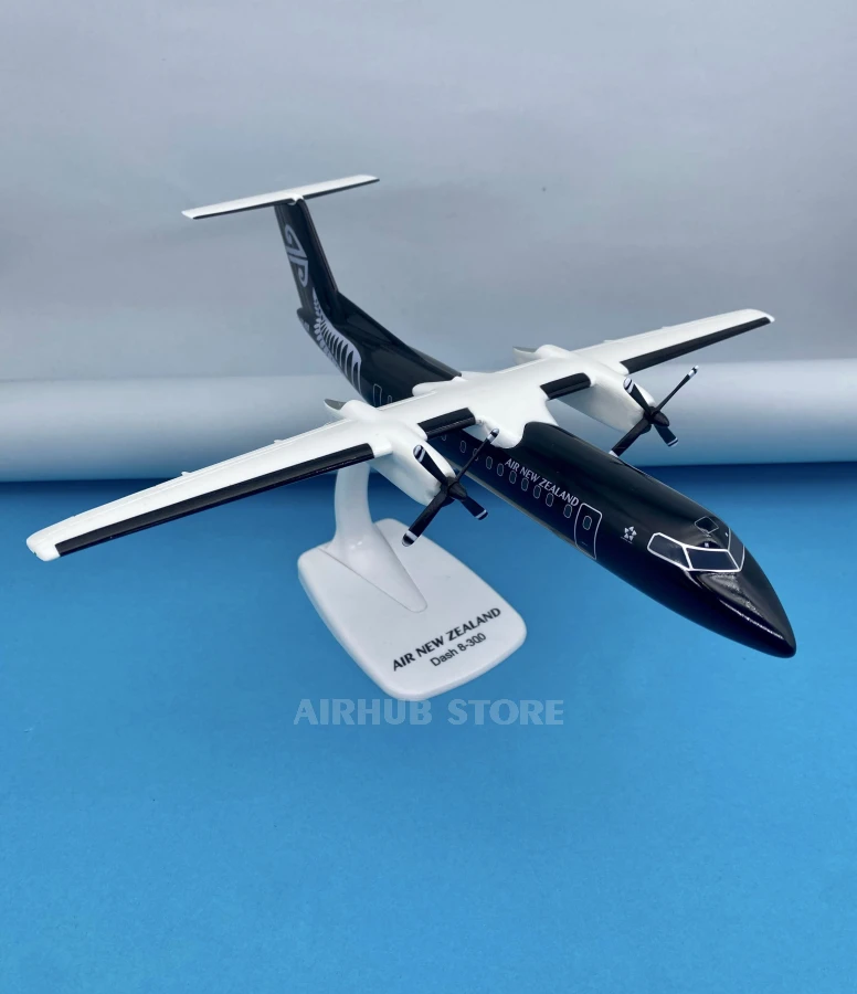 The Bombardier Dash 8-300 in Air New Zealand's signature black and white livery recreates one of the world's most famous regional turboprop aircraft. The Dash 8-300 has been widely used for domestic and regional flights, particularly in New Zealand, where it has become an important part of the fleet on short and medium-haul routes.