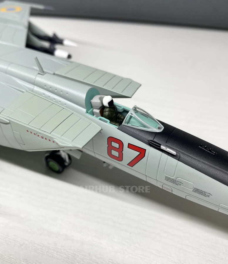 We are pleased to present an accurate scale model of the MiG-25 Foxbat Red fighter jet with tail number 87, one of the most famous Soviet aircraft, famous for its supersonic speed and ability to intercept strategic targets. This red model looks impressive and realistic thanks to the thoughtful details and high-quality workmanship.