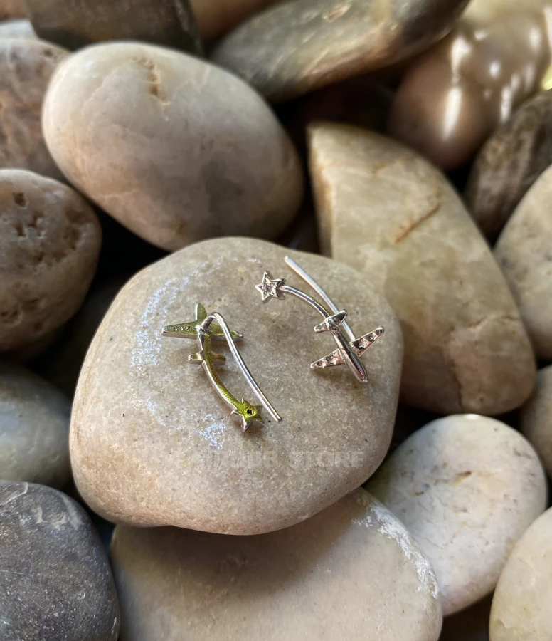 The earrings are made of silver, ideal for those who want to add a touch of sky to their look — dreamy, stylish, symbolic. They are perfect as a gift for an aviator, a traveler, or simply someone who loves airplanes.